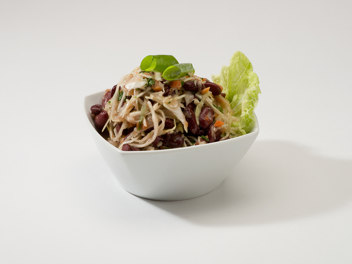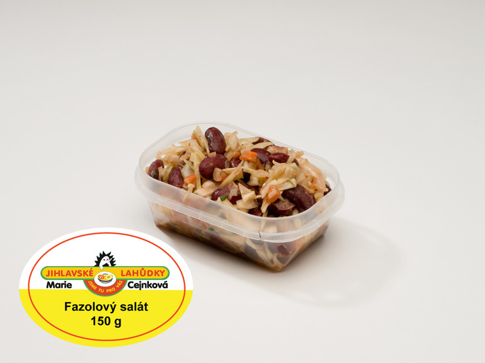 Složení: sterilované fazole minimální množství 30% (fazole červená, voda, sůl), zelí bílé čerstvé, sterilovaná mrkev (mrkev, voda, ocet, sladidlo sacharin, sůl, extrakt koření), cibule, řepkový olej, pór, cukr, sůl, sojová omáčka, směs koření, bioprotektor a antioxidant Biamex 012 (směs kyselých mléčných kultur, uhlohydrátů, soli a výtažků z koření).