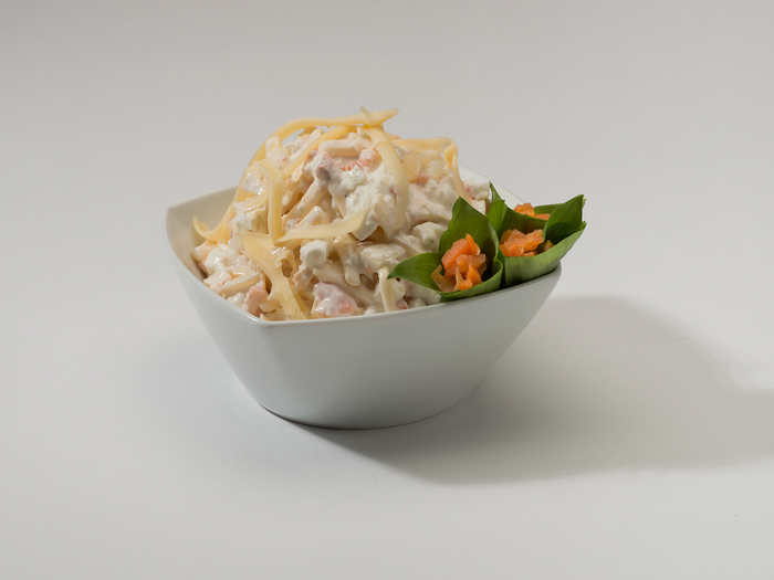 Složení: sýr Eidam, vejce, jogurt bílý minimální množství 15%, majonéza (rostlinný olej, voda, vaječné žloutky, ocet, směs modifikovaných škrobů E1414, E1450, stabilizátor E410, E412, E415, sůl, konzervant E202), sterilovaná mrkev (mrkev, voda, ocet, sladidlo sacharin, sůl, extrakt koření), cibule, sůl, směs koření, bioprotektor a antioxidant Biamex 012 (směs kyselých mléčných kultur, uhlohydrátů, soli a výtažků z koření).