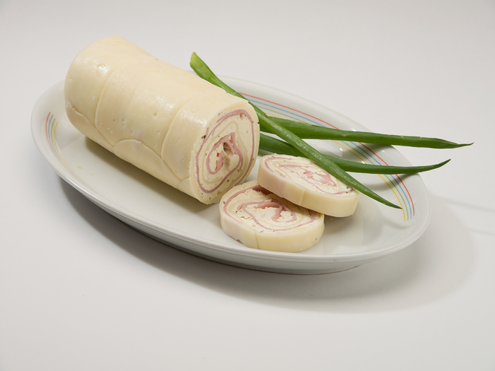 Složení: sýr Eidam minimální množství 30%, šunka vepřová minimální množství 18% (vepřová kýta 70%, voda, sůl, konzervant E250, želírující látky E407, E407a, zahušťovadlo E425, stabilizátor E451, E450, cukr, antioxidant E301, E316, E331, zvýrazňovač chuti E621), máslo, aspik (voda, ocet, želatina, cukr, sůl), zahradní bylinky.